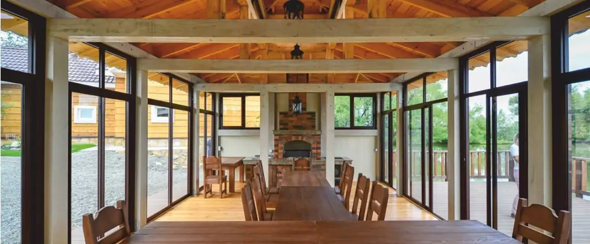 Остекление с применением алюминиевых профилей защитит террасу от неблагоприятных погодных факторов, а также посторонних запахов с улицы.